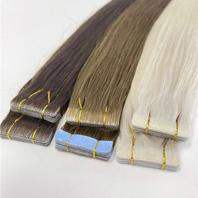 Extensión de cabello de mujer de tejido invisible popular en EE.UU. Tono gris marrón extensión de cabello atada a mano